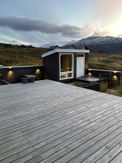 Ein extra Häuschen neben der Terrasse und der private Hotpot machen das Urlaubsvergnügen perfekt