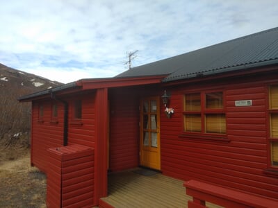 The cottage is surrounded by typical Icelandic forest